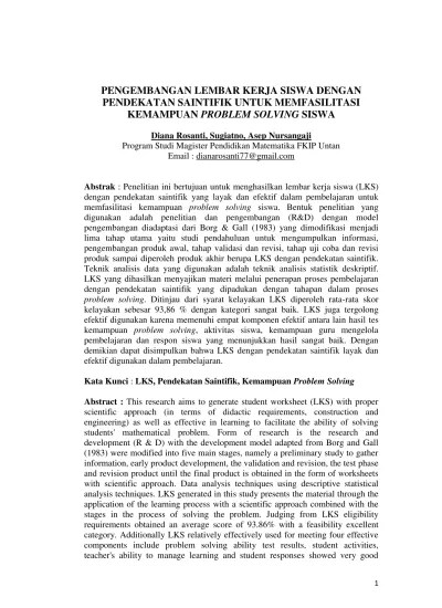 13600023 (2018) pengembangan lembar kerja siswa (lks) matematika dengan pendekatan problem posing. (lks) berbasis problem solving yang dilakukan oleh sulasno dkk bahwa. Lembar kerja siswa (lks), problem solving, kemampuan. Hal ini dikarenakan masih kurangnya contoh soal yang melatih siswa berpikir kritis. Objek penelitian adalah lembar kerja siswa berbasis problem solving.